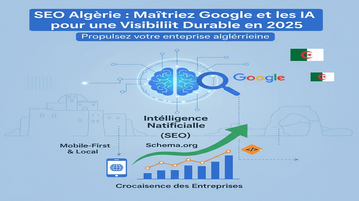 Nous sommes l’une des meilleures agences de référencement naturel en Algérie, spécialisée dans la conception de stratégies digitales sur mesure pour attirer vos clients et prospects sur l’ensemble du Web. Grâce à une analyse approfondie, nous identifions les actions clés pour améliorer votre positionnement sur Google et augmenter votre trafic qualifié. Profitez de notre expertise en SEO, conseil en stratégie digitale et Web Analytics pour développer votre présence en ligne, aussi bien au niveau local qu’international.